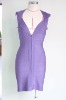 Herve Leger Bandage Purple Dress Description: This sleek, sensual bandage dress makes a statement day or night. Complete the look with metallic bracelets and dramatic heels. * High neck with keyhole cutout. Cap sleeves. Crisscross bandage detail below bust and at front hip. * Wide straps form a high V-shaped back. Back center zipper with hook-and-eye closure. Hits at mid-thigh. * To maintain the beauty of your garment, please follow the care instructions on the attached label. * Rayon, Nylon, Spandex. * Imported.